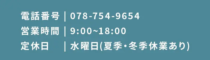 | 電話 | 078-754-9654 (下記の営業時間内にご連絡ください) |